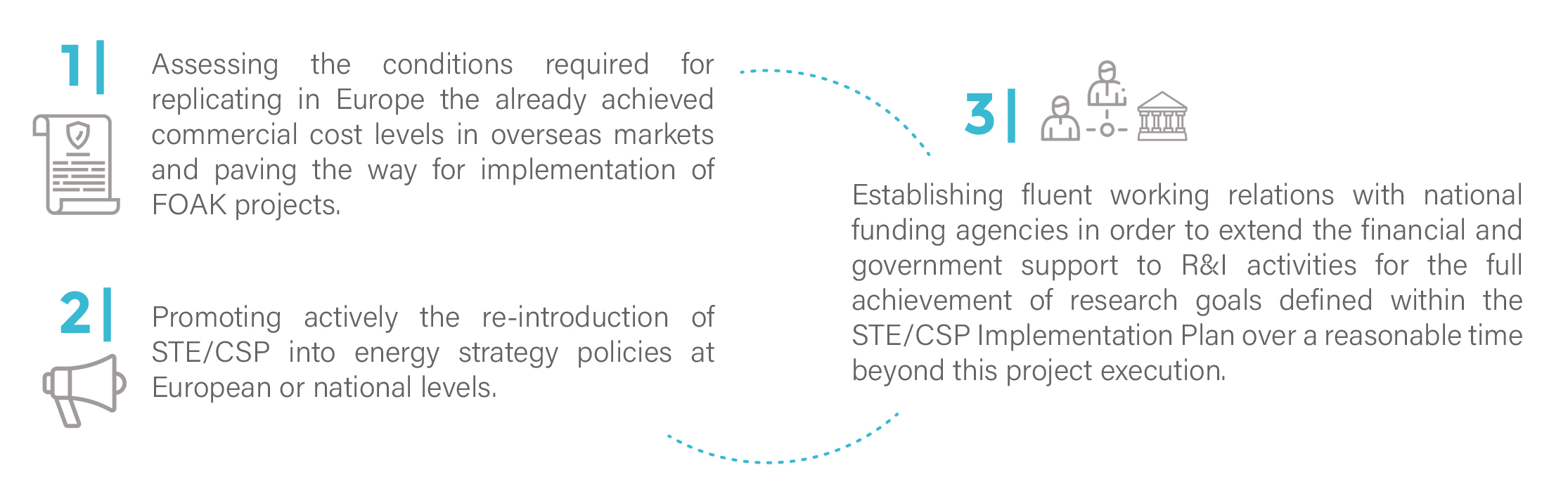 Acting as competence centre of the Implementation Working Group within the Strategic Energy Technology Plan (SET Plan) of the European Commission, the overall goal of HORIZON-STE is to support the execution of the Implementation Plan regarding both STE/CSP Research and Innovation lines as well as First-Of-A-Kind projects that will help steer countries through political, legislative, and institutional shortcomings linked to various national policies concerning solar thermal electricity. Much of the focus centres on improving procurement of manageable RES and increased public funding for STE/CSP research.